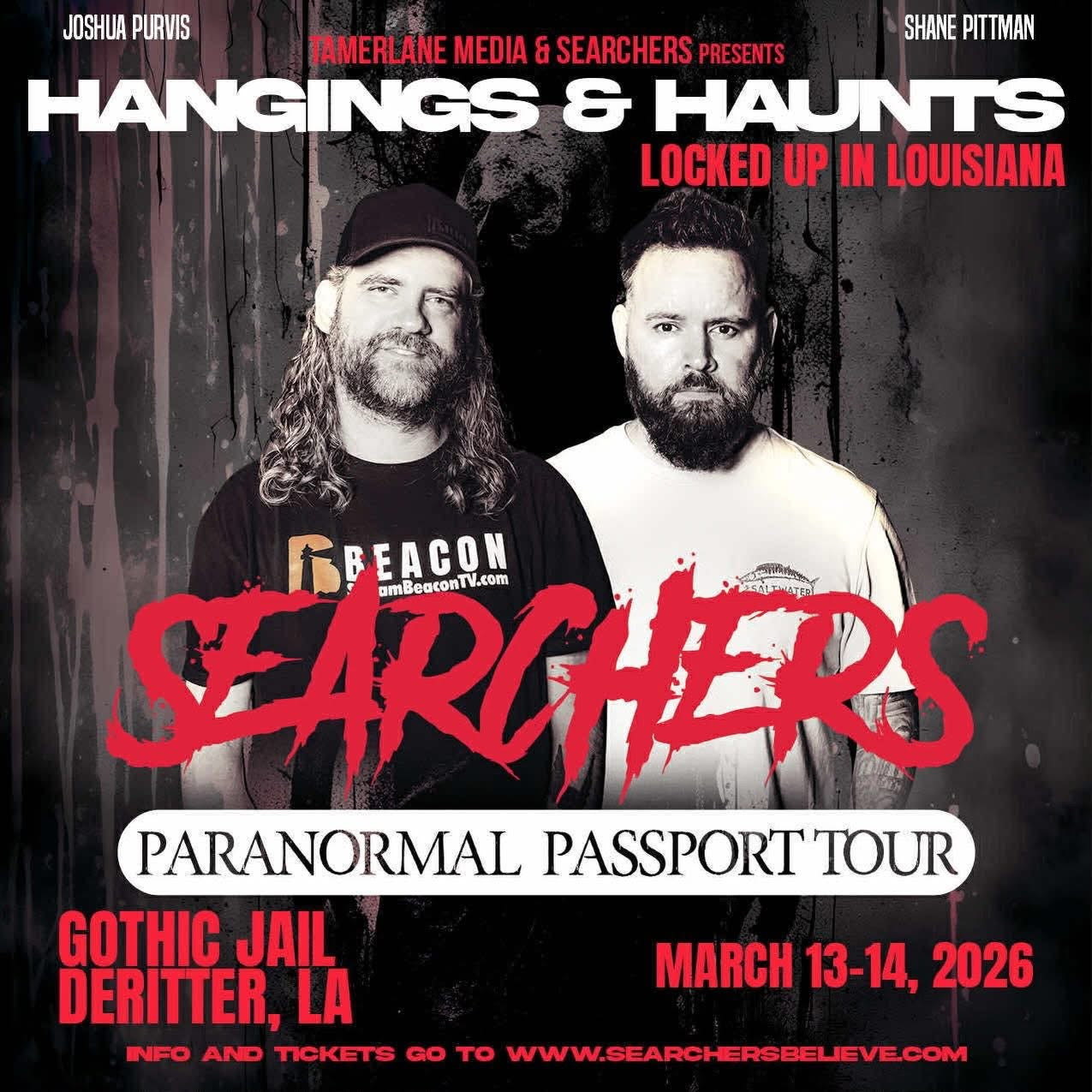 Shane and Josh are kicking off their first ever Searchers Paranormal Passport Tour! They are heading to the Gothic Jail in DeRidder, Louisiana…one of the darkest spots in the South. Join them for a raw, up-close Searchers experience you won’t forget!